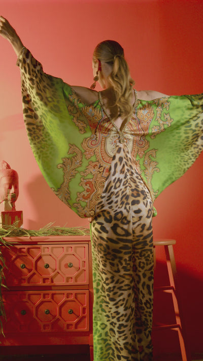 Maidy Orange Green Silk - Long Dress